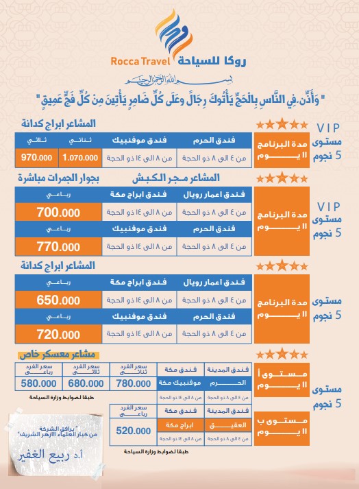 اضمن الآن #حجك_المباشر مع روكا للسياحة بباقات #الحج المميز التابع لوزارة السياحة المصرية👌🏻